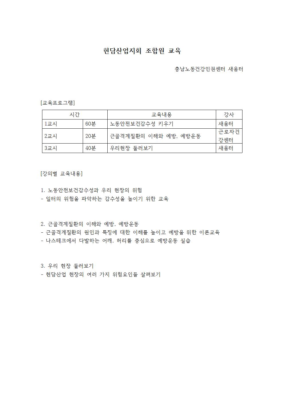 현담산업지회 조합원 교육 기획안