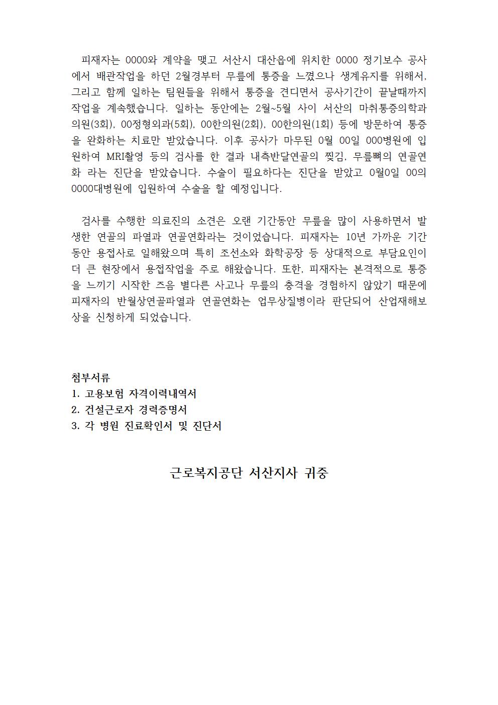 상 병 명 : 내측반달연골의 찢김, 무릎뼈의 연골연화
