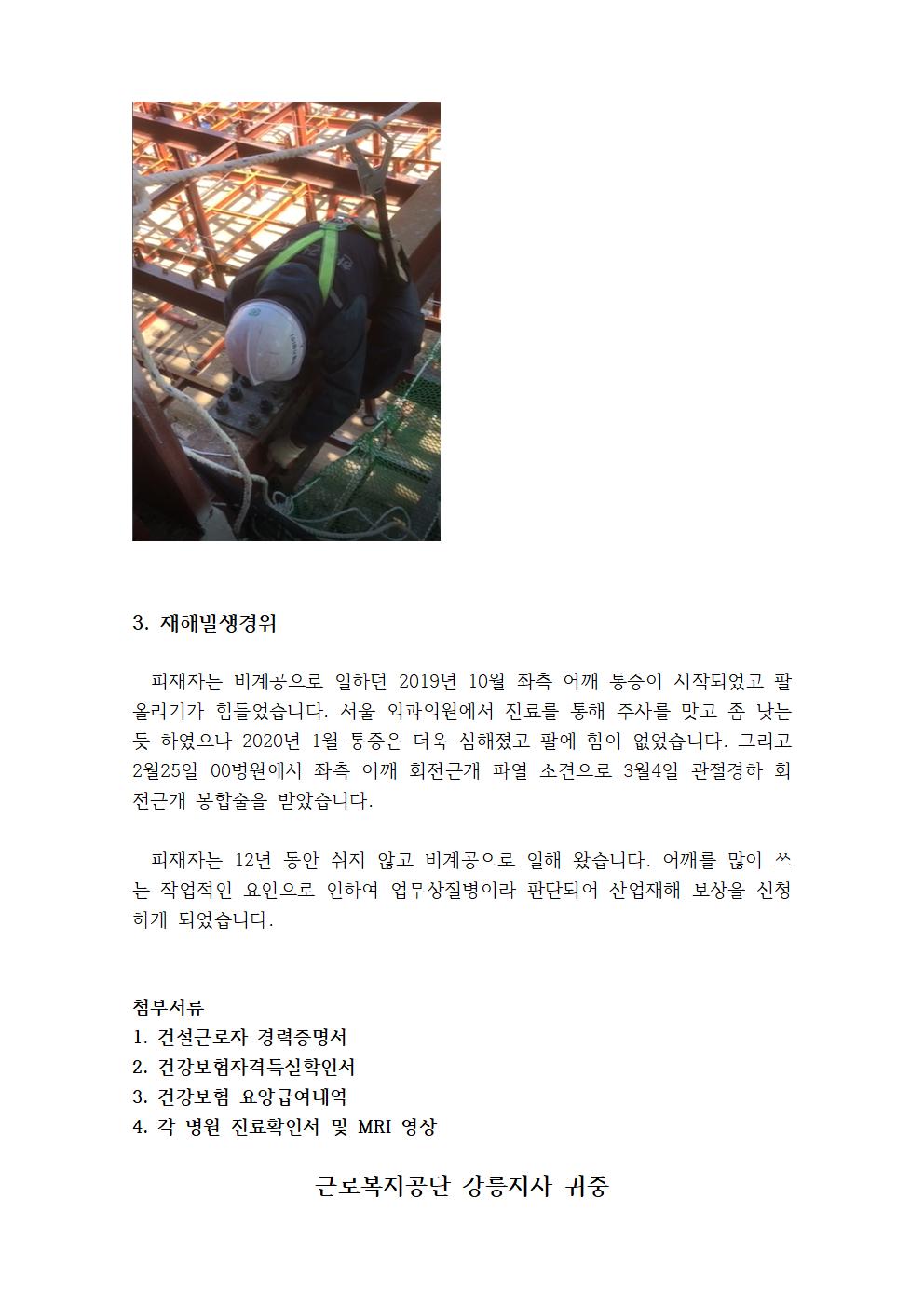 [근골질환] 플랜트 비계노동자의 어깨 회전근개 파열