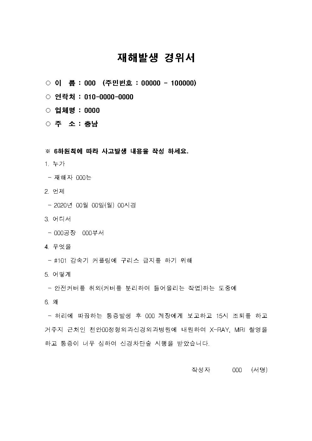 상 병 명 : S3350 요추부 염좌 및 긴장