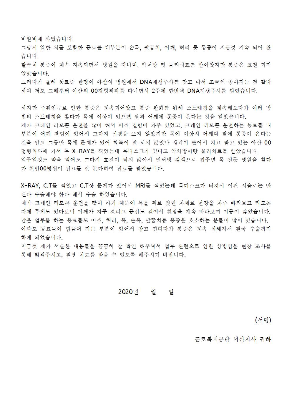 [근골질환] 목 부담작업으로 경추간판 장애