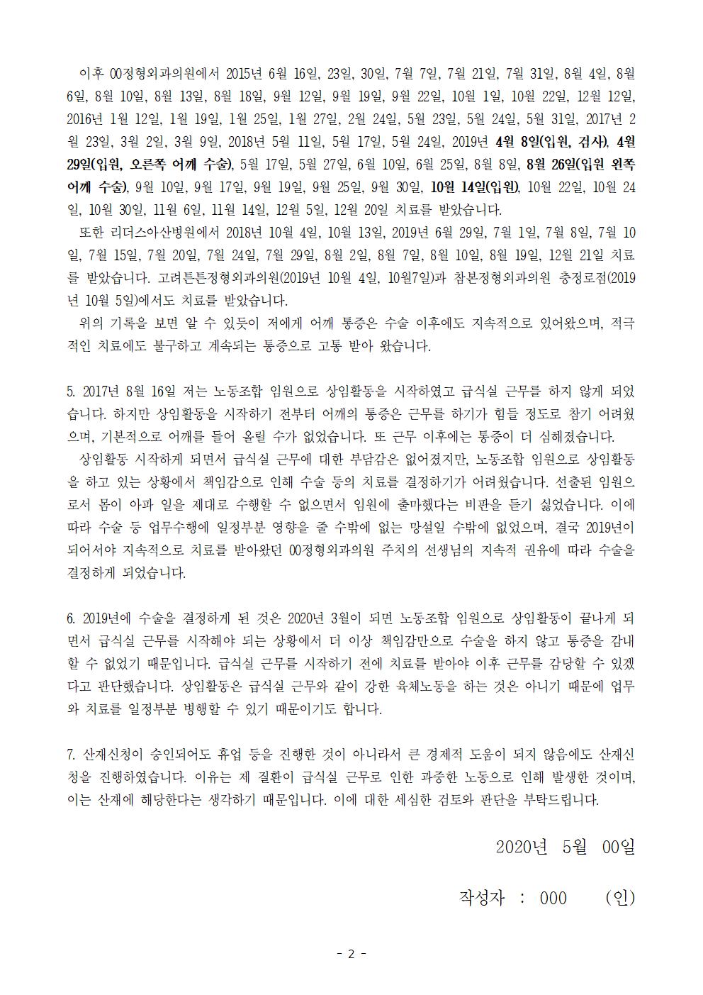 [근골질환] 급식실 노동자의 노동조합 전임기간 중 어깨 회전근개 파열 및 이두박근 파열