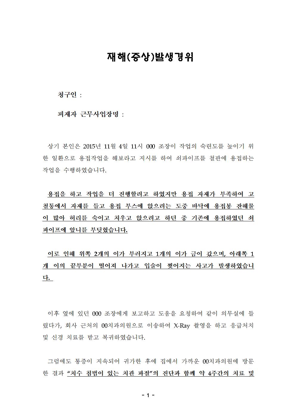 [사고] 용접 도중 부딪쳐 치아가 부러진 사고