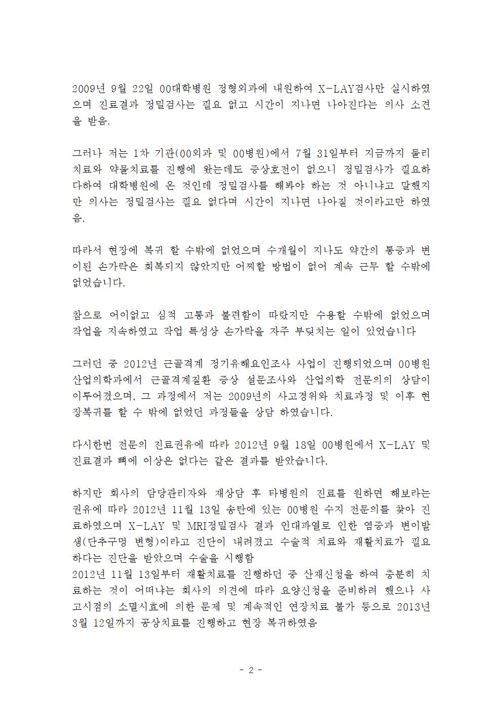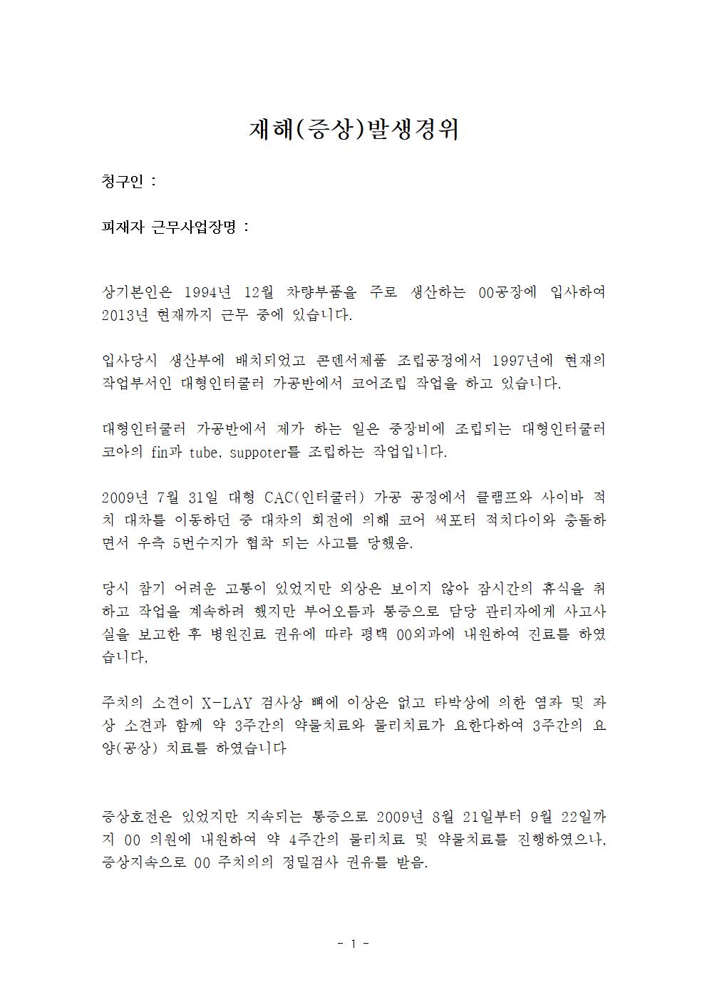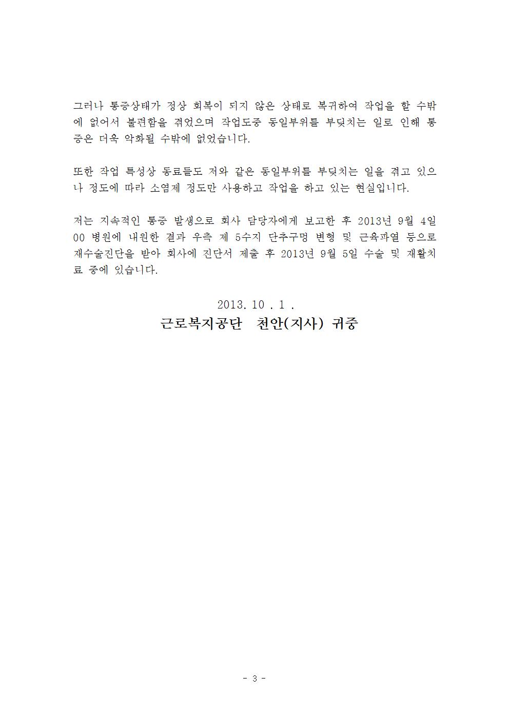 [근골질환]손가락 협착 공상 처리 후 산재진행