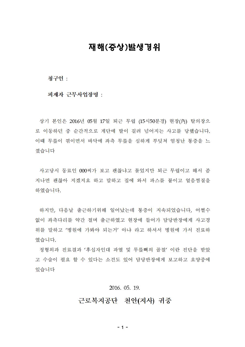 [사고] 퇴근을 위해 탈의장으로 이동 중 넘어짐