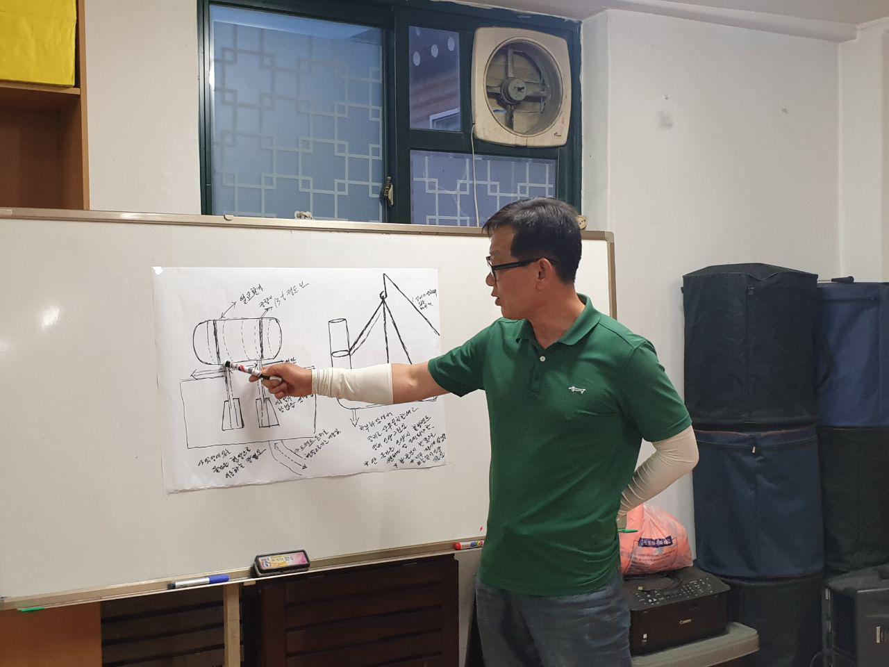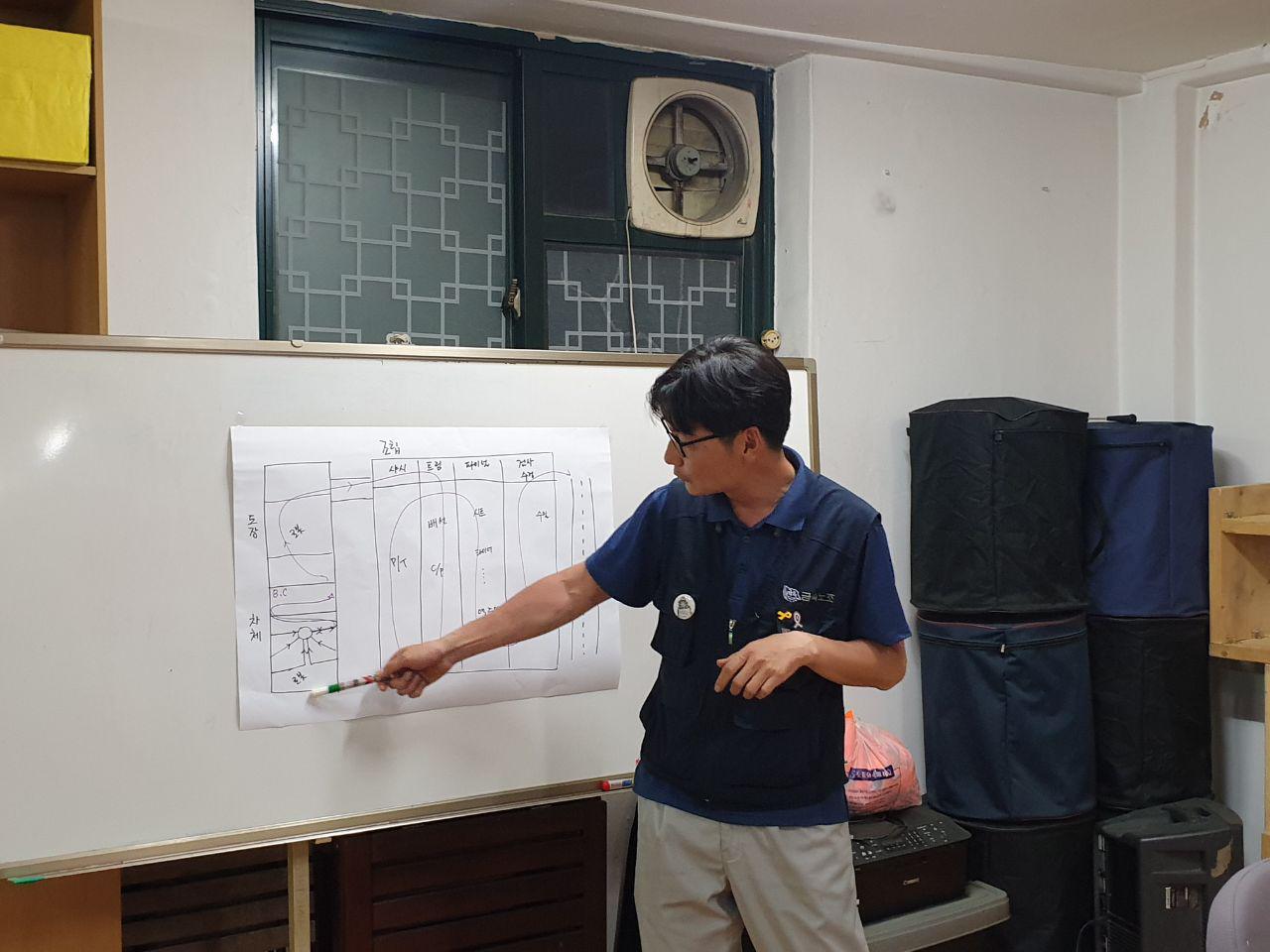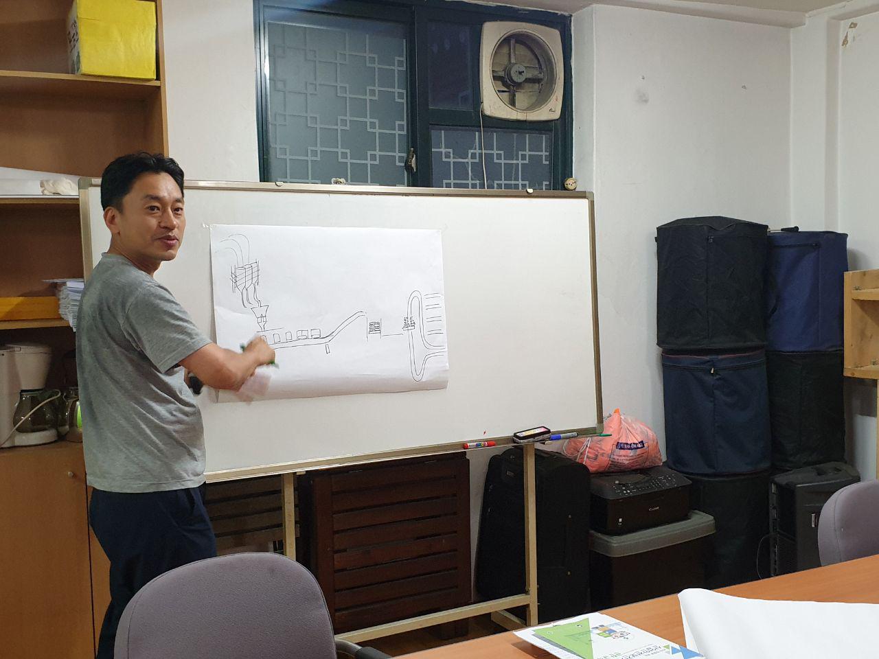 말로만 듣던 플랜트 현장, 화학공장 등을 그림으로 그려서 동지들에게 설명하고 보여주었습니다. 설명에 갈증을 느끼거나 모자란 부분이 있다고 느끼는 동지들은 사진을 직접 보여주기도 하셨습니다.