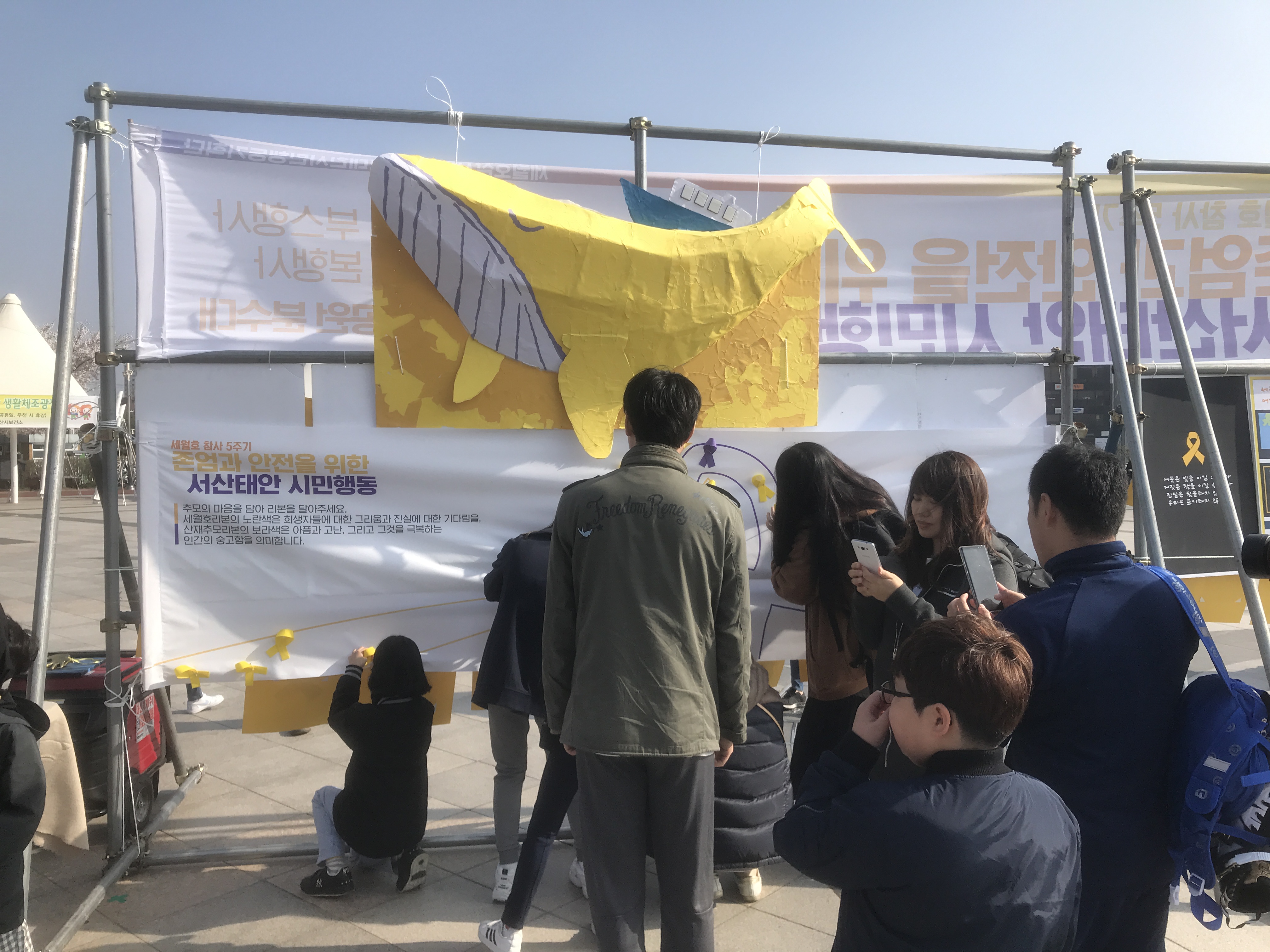어제 오후부터 늦은 저녁까지 진행된 세월호참사 5주기 존엄과 안전을 위한 서산태안시민행동. 다양한 시민사회단체들과 함께 세월호참사희생자들과 김용균님을 비롯한 산재희생자들을 추모하고 우리의 존엄과 안전을 위한 실천을 다짐하는 소중한 시간이었습니다. 일주일간 치러진 다양한 주간행사들부터 본행사까지 수고해주신 모든 분들께 감사드립니다.